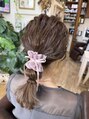ポニーテール系アレンジは髪飾りがある方が華やかになります