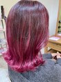 ミニボブ外ハネ レッド ピンク 暖色 赤髪 愛され インナーカラー