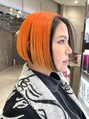 シャープな印象の前下がりボブは首周りも立体的にカットをしてどこからみても美しいシルエットに。カラーリングはオレンジとブラックでコントラストをつけています!*原宿 表参道 明治神宮前 美容室《Instagram→@takuyoshi_nishio》