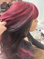 ハイトーンカラーをしたいけど、誰とも色は被りたくない方や個性的なカラーをしたい方ぜひ私にお任せ下さい!カウンセリングでお客様に似合うスタイルを提案させていただきます!赤と黒を半分ずつにすることでさらに個性的で可愛い色にしました!