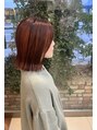 髪質、生え方、骨格に合わせた切りっぱなしボブです。ブリーチでバレイヤージュ後ボンドカラーオレンジ、PYRを調合しました。