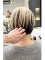 アンブレラカラー ハイトーン ブリーチ 抜きっぱなし 白髪ぼかし 耳掛けショート アシンメトリー 40代50代60代 カジュアル 40代ハイトーン 50代ハイトーン umbrellacolorブリーチカラー