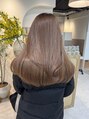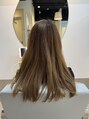 【Caraオリジナルカラー】今季おすすめのミルクティーベージュカラーでダメージレスな透明感のある艶髪カラーになります♪!ブリーチなしの透明感カラーで艶々になります☆髪を傷ませたくない。黄色くなりにくい色もちのいいカラーにしたい方はおすすめです♪