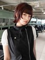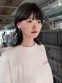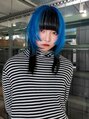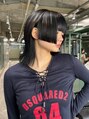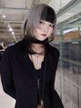 縮毛とブリーチ黒染め履歴からワンブリーチでデザインしました。前後処理トリートメントを使えばダメージレスにできます。カットはボブレイヤーに前下がりの姫カットで重めモードな雰囲気に。