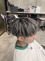 メンズパーマホワイトメッシュ縦落ちツイスパマッシュ