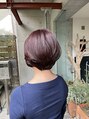 丸みのあるショートボブスタイルにチェリーレッドのカラーで、ツヤツヤに。