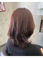 レイヤーカットで動きが出て、チェリーブラウンに染めて華やかな印象になります。ぜんぶ内巻きにしても可愛いです。