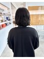 フレンチパーマアゴライン付近の毛先重めのボブスタイルにパーマをかけたスタイルです