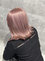 - サクラベビーピンク前髪ありミディアムボブ10代20代ケアブリーチ