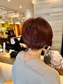 レッドブラウン系酸性カラー。白髪をいかして温かみのある色合いに。10年以上酸性カラーだけです。ツヤツヤで気に入って頂いてます。アルカリカラーに比べて髪、頭皮に刺激も少なく、白髪をカバーできます。髪質改善にもつながります。/酸性カラー