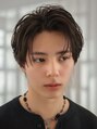 黒髪マッシュセンターパートビジネスニュアンスパーマ毛流れ