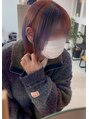 全体18.5Lvブリーチをして、カラーはお任せ頂いたので全体をペールピンクに反対色のブルーをポイントで入れました。あえて反対の色を入れお互いが目立てるようにしました。/福島市