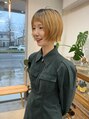 襟足ギリギリでリップラインでミニボブをつくりまた!か周りはザクザクなレイヤーをいれて前髪もザクザクなオン眉でお洒落なスタイルです!
