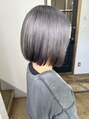 ブリーチでトーンアップしてから暗めのグレー系でカラーリングしています。カットはまとまりのいいあごラインボブです。