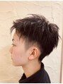 サイド~バックにかけて5mm~12mmのツーブロックで全体に7センチのショートスタイル。量感を軽くフロントはアップバングでサイドにつなげました。ハードワックスとスプレーでスタイリング仕上げ!