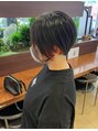 髪質、生え方、骨格に合わせ襟足をシザーで刈り上げました。インナーカラーです。ボンドカラーオレンジ、PYRを調合しました。