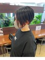 髪質、生え方、骨格に合わせ襟足をシザーで刈り上げました。インナーカラーです。ボンドカラーオレンジ、PYRを調合しました。