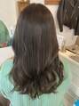 グレージュとオリーブをミックスしてカラーすることで、透明感と柔らかさを感じる絶妙な色味を表現でき、色が抜けてきても赤みが出にくくなります!全体は伸ばしていくので毛先の厚みを整えて、前髪と顔まわりは骨格やお悩みをカバーの似合わせカットです。