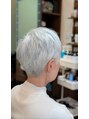 女性のナチュラルグレイヘアのお客様です。ノーセットでもある程度まとまりますが、ライトパワーのワックスを全体的に付け、束感を出すとショートの良さがより際立ちます。しっかりというより、飽くまでナチュラルに。