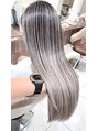 ブリーチ2.3回での透明感の高いホワイトベージュ系のバレイヤージュです。ハイライトブレンドが海外風でストレートも巻いても綺麗なデザイン。髪質改善ケアで髪の負担を抑えてデザインする事で維持や継続が可能なデザインとなります。
