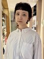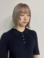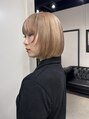 ワンレングスの切りっぱなしボブ。柔らかなベージュカラーで透明感とモードさを両立。ストレートタッチで艶感を引き立てた、シンプルだけど存在感のあるスタイルです。
