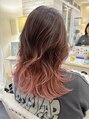 グラデーションでブリーチしたベースに毛先はピンクでオンカラー。根元のみ白髪染めを入れて気になる白髪はカバーしつつ、毛先に向かって明るくなるグラデーションカラーは根元が伸びてきても気になりにくいのもいいところ☆