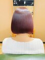「艶やかで上品なボブスタイル。絶妙なカットラインが美しいシルエットを生み出し、どの角度から見ても完璧な仕上がりに。ツヤ感と透明感のあるカラーが魅力を引き立て、洗練された大人の印象を演出します。」