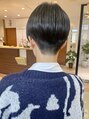刈り上げもしているハンサムショートスタイル。前下がりのラインでカッコいい印象になるようにしていますスタイリングは少量のオイルで束感を出して簡単に出来ます