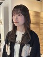 透明感たっぷりグレージュ元々髪色が明るいお客様は暗めでも透明感がはっきりわかります。前髪は薄めのフルバングに。