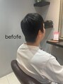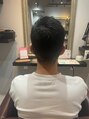 ご紹介でご来店くださった新規のお客様です。いつもバリカンで最短の長さをご希望だそうで、今回も0.8ミリバリカンを使用させていただきました。ハチが男性の場合張る事が多いのですが、気にならないぐらいにトップと繋いでカットしております。
