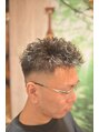激しいフェードでは、ない通常の刈り上げにも対応可能。アイロンでかけるツイストパーマ