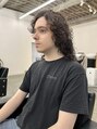 顔まわりは短いレイヤーを入れメンズのロングウルフスタイルに。ウェーブをいかして動きのあるスタイリングに♪