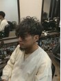トップはアイロンパーマでボリュームを出して、サイドとバックはDAPでボリュームダウンしつつ流れをだしています。かなり男らしいスタイルです。