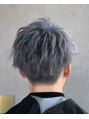 カットは大道の刈り上げマッシュスタイルカラーはブリーチカラーをして黄色味が消えるまで行いその後、オンカラーで少し青みがかったホワイトグレーに!