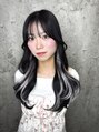 黒髪にホワイトのエクステをインナーに付けました!毛先ワンカールで大人っぽいスタイリングがおすすめです♪