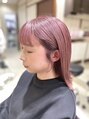 カットは切りっぱなしミディアムボブに、ブリーチ後ハイトーンピンクをオン。もみあげはわざと短くして、"もみれ毛"をつくりました。ストレートアイロンで外ハネして、バームで仕上げてます。