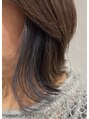 インナー部分をケアブリーチして、ブルーを◯全体は暗めのオリーブベージュで、くすませてバランスも◯顔周りにレイヤーカットをすることで、インナーもしっかり見えてくれるスタイルです!
