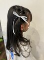 髪の毛でハート&リボンのアレンジ。巻き髪に合わせて。発表会や入学式などのアレンジに。