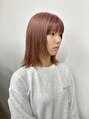 ほんのりレイヤーを入れたミディアムハイトーンベースに、淡いニュアンスのピンクベージュ光の加減で見え方が変わる繊細な色味がキレイです