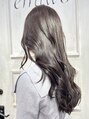 カットカラーoggiottoトリートメント毛量多い。とてもしっかりとした髪質です。ハイトーンにはせずレイヤーを使いながらのスタイルです。