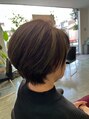 シャギーショートカット!ウィービンクを明るく入れて、グリーン系のマットブラウンをカラーリングしてます。
