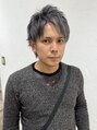 光の当たり方によって見え方の変わる透明感カラーは2ブリーチ後に6トーンのシルバーグレーをオン。カットはツーブロックのショートウルフベースで中間から毛量調整をして適度な軽さを。前髪はサイドパートの根本だけ立ち上がりを。