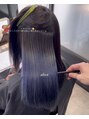 乾かしただけで広がりやまとまりを持たせるために、ハイトーン縮毛矯正とカラーとカットをしています!カラーはネイビーブルーをいれて色落ちも楽しめるように☆ブリーチをして縮毛矯正を諦めていた方ぜひご相談下さい!