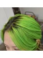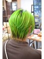2ヶ月前にブリーチカラーをして伸びた黒髪をあえて残すカラーにしました!!黒との組み合わせがいいライムカラーに襟足はベージュをいれてます!カットは、襟足伸ばし中なので長さは変えずに全体のフォルムをみて切り直しをしてます!