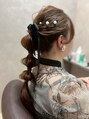 ヘアセット 結婚式 お呼ばれセットアップ ポニー シニヨン