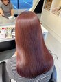 ピンクブラウン 韓国風顔まわりカット ワイドバング
