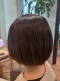 天然ヘナ・インディゴ2度染めです☆白髪量は多めですが、2度染めでしっかり染まっています。カットはレイヤーをつけない前下がり気味のボブで、ツヤ感&収まり重視ですが、毛量がかなりあるので、中をある程度軽くしています♪