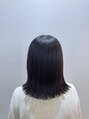 縛れて、下ろしてる時は肩について自然に外ハネになるようにカットしてあります。毛先を軽くしてあるので、オイルをつけると毛先のギザギザ感が可愛いです!