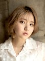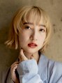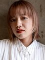 短めのに切り込んだ前髪と顔まわりのレイヤーで個性的な雰囲気を。カラーはブリーチ後ベージュ系カラーでオンカラーしてあります。
