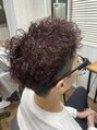 ジェットモヒカン強パーマにディープレッドでこなれスタイル